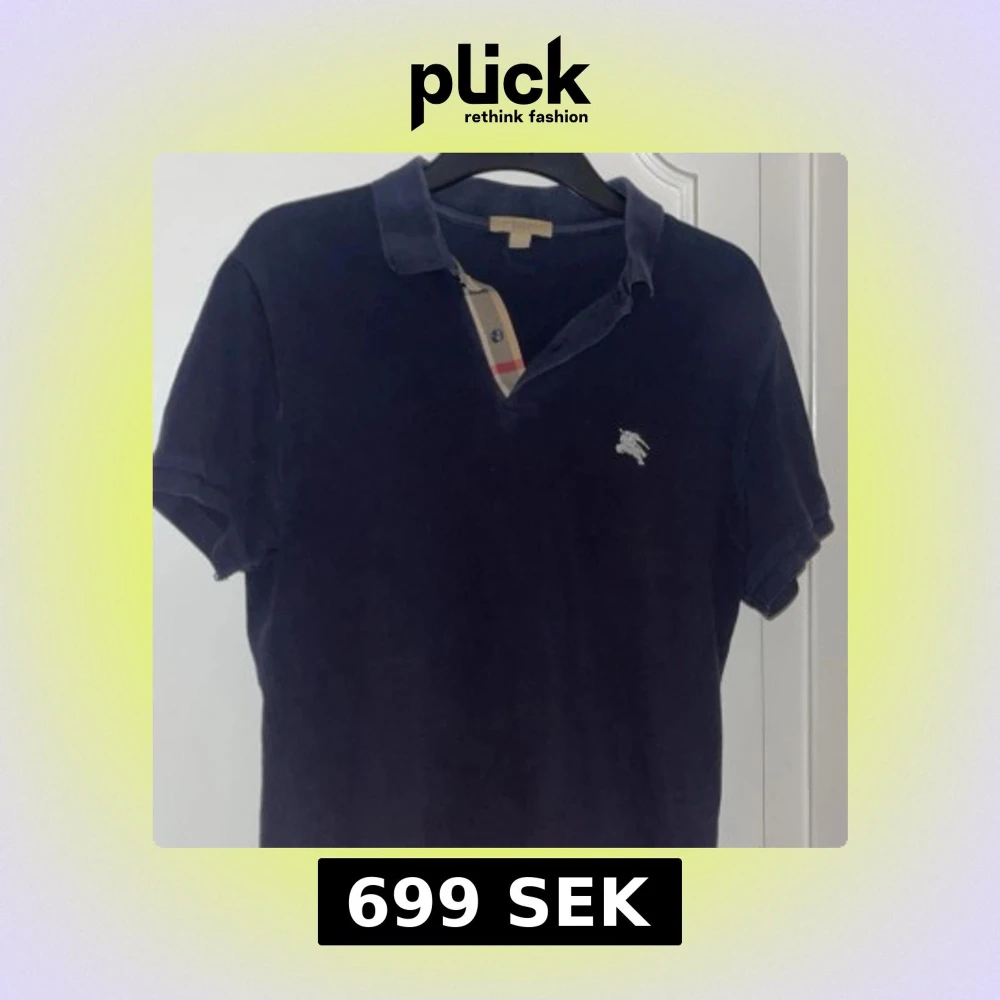 Snygg mörkblå pikétröja från Burberry med klassisk krage, korta ärmar och ikonisk rutdetalj vid knäppningen. Storlek S, passar S. Skick 6-7/10.