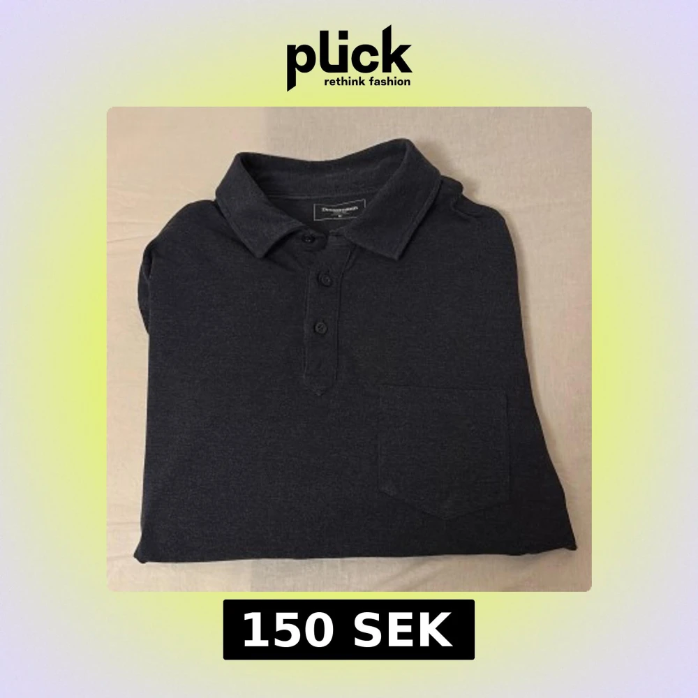 Säljer en stilren mörkblå pikétröja från Dressmann i storlek M. Tröjan har en klassisk krage med tre knappar och en bröstficka. Bra till våren