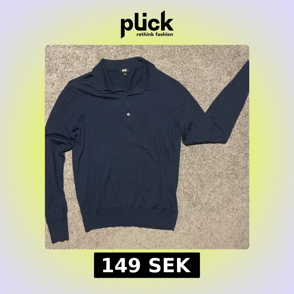 Säljer en stilren mörkblå pikétröja från Uniqlo. Tröjan har en klassisk krage med två knappar och långa ärmar. Perfekt för en avslappnad men ändå snygg look.