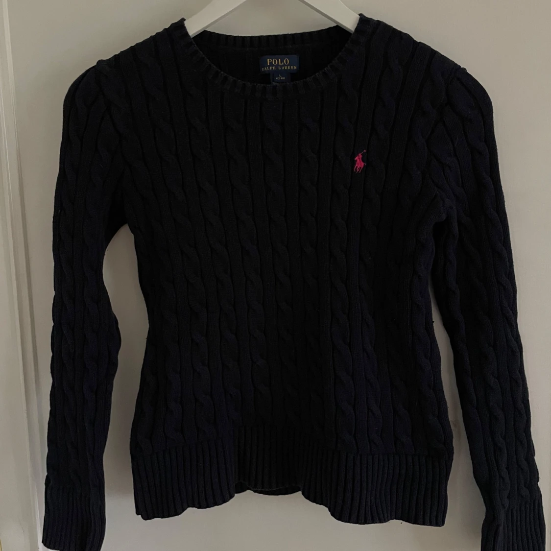 Mörkblå ribbad tröja i märket Ralph lauren. Passar ca xs-s. Den är i bra skick!