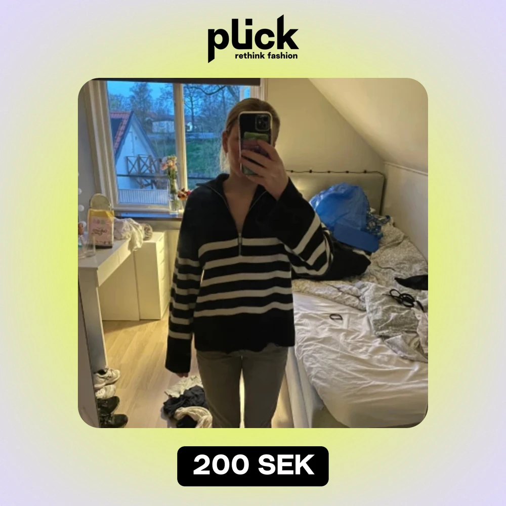 Jättesnygg mörkblå randig tröja med dragkedja och vida armar. Har inga fläckar eller defekter och är som ny. Köpte för 400 kr men säljer för 200 kr. Skriv om du har frågor.