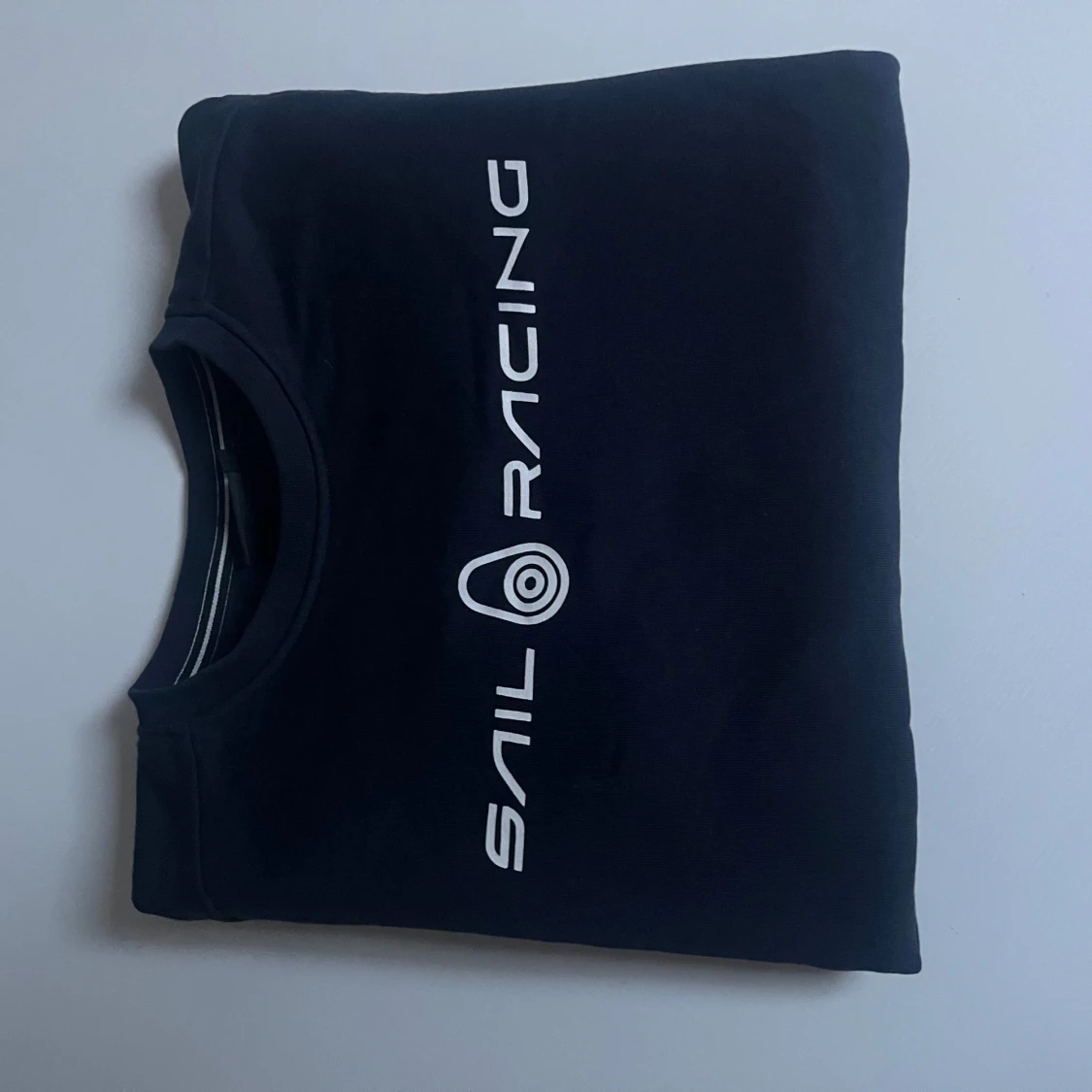 Mörkblå sweatshirt från Sail Racing med vit logga tryckt över bröstet. Klassisk rund halsringning och ribbade muddar vid ärmslut och nederkant. Bra passform vid rätt storlek✅