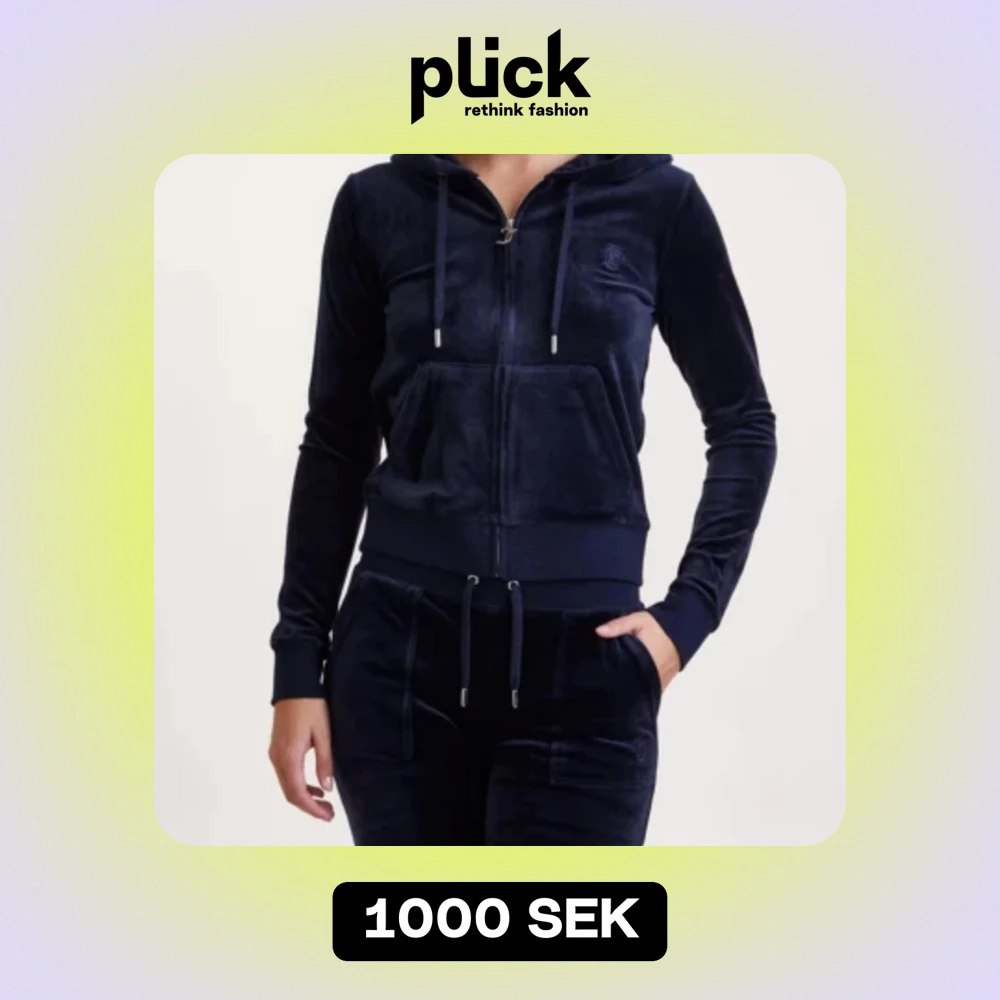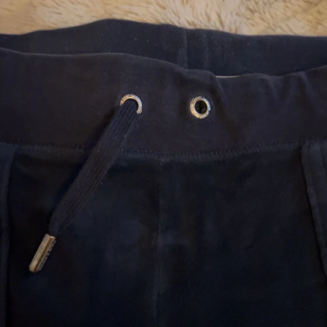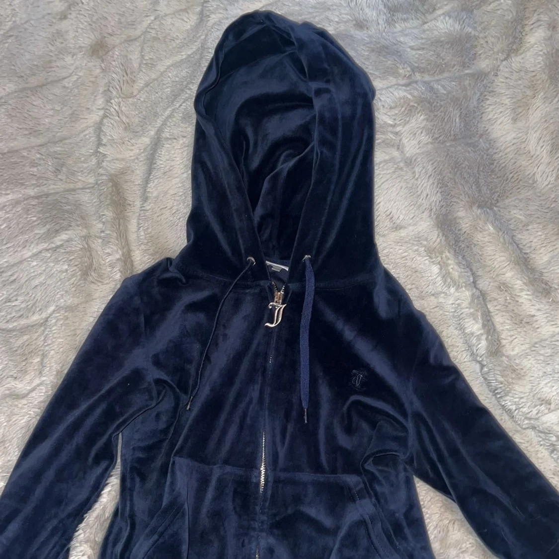 Säljer ett supermjukt och snyggt marinblå juicy couture set. Använt några gånger och är i ett bra skick! Dragkedjan på tjocktröjan har rostat lite men är inget man ser eller tänker på, sen har ena snöret på byxorna åkt in men är enkelt att fixa.☺️