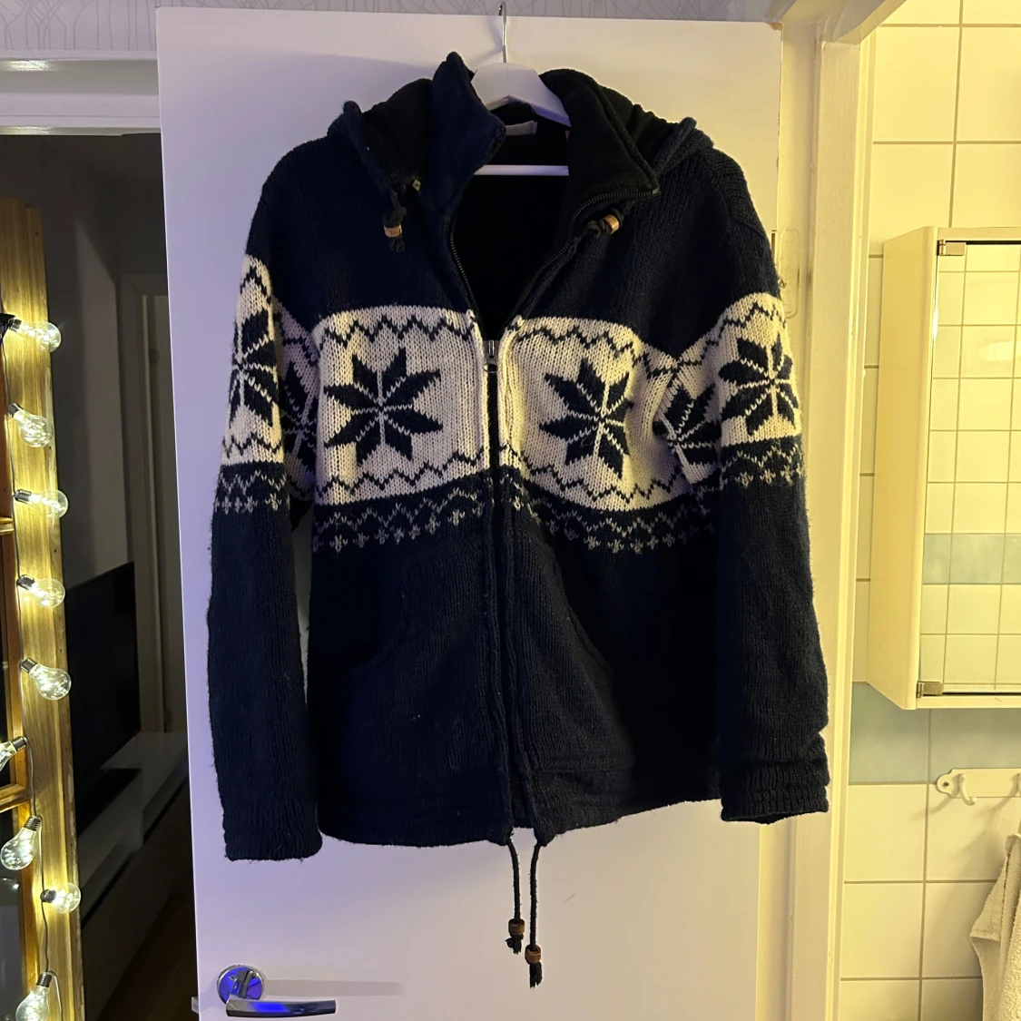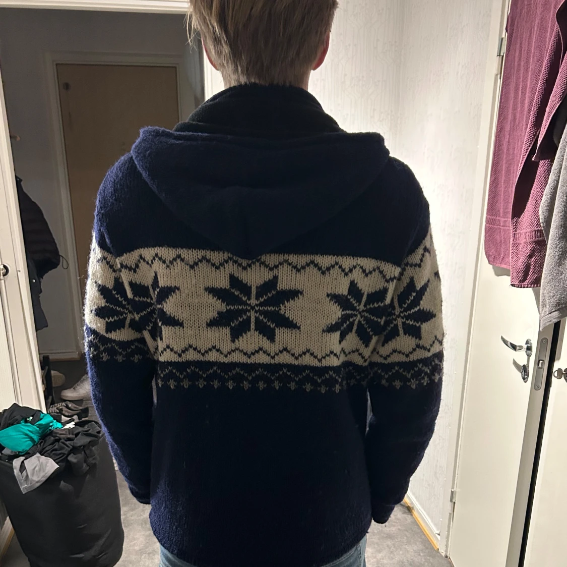Tja, säljer min blåa cardigan som är otroligt varm och bekväm. Perfekt för sen vinter och ända inpå våren. Använd lite under vintern men annars knappt någonting, skick 8/10. Modellen på bilden är 183 cm och 75 kg. Den är true to size, skriv gärna om du har frågor eller liknande🤩