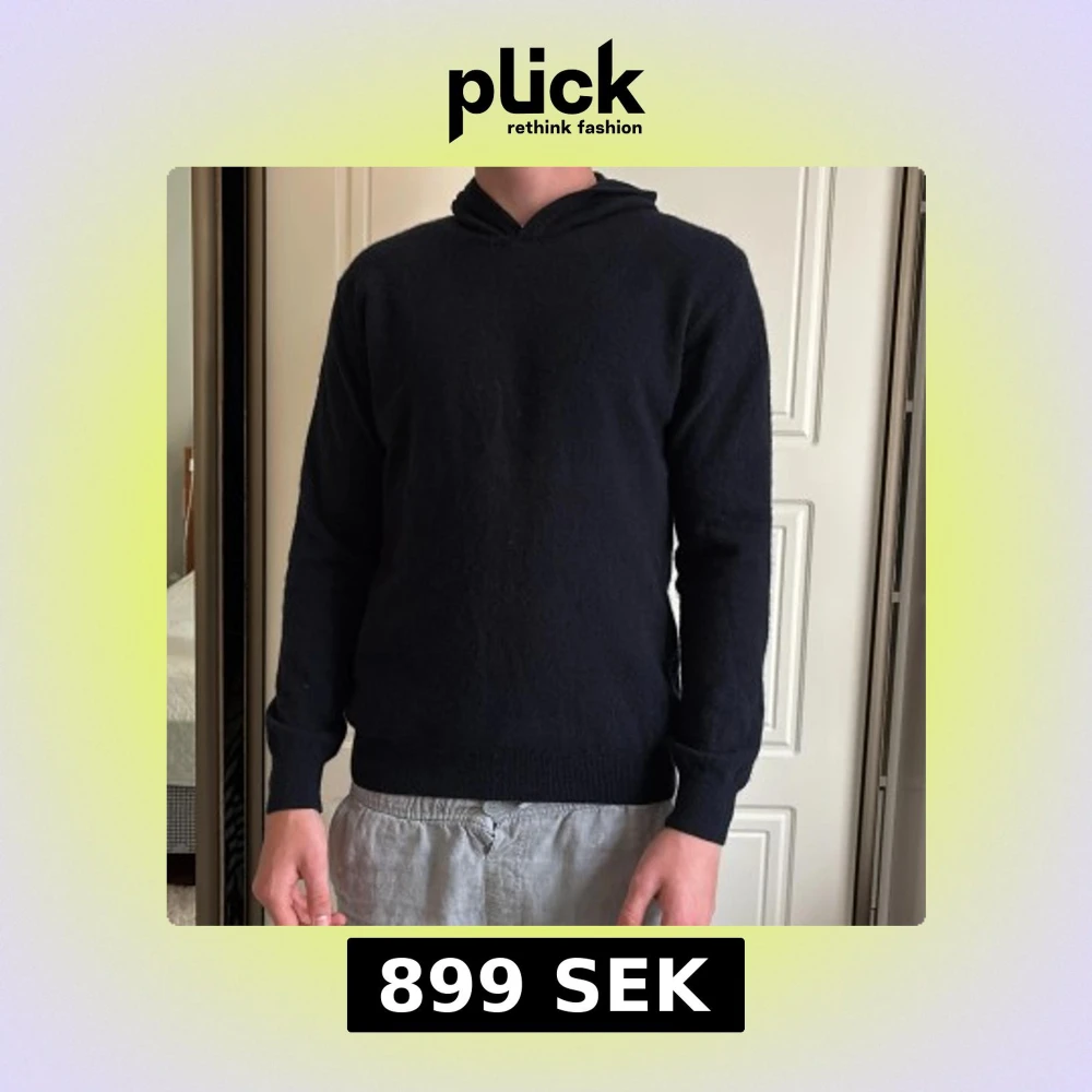 Mörkblå hoodie i kashmir med enkel och clean design. Tröjan är stickad, har långa ärmar och en klassisk huva utan snörning. Från Oscar Jacobson nypris: 1599. Storlek M men passar även S!