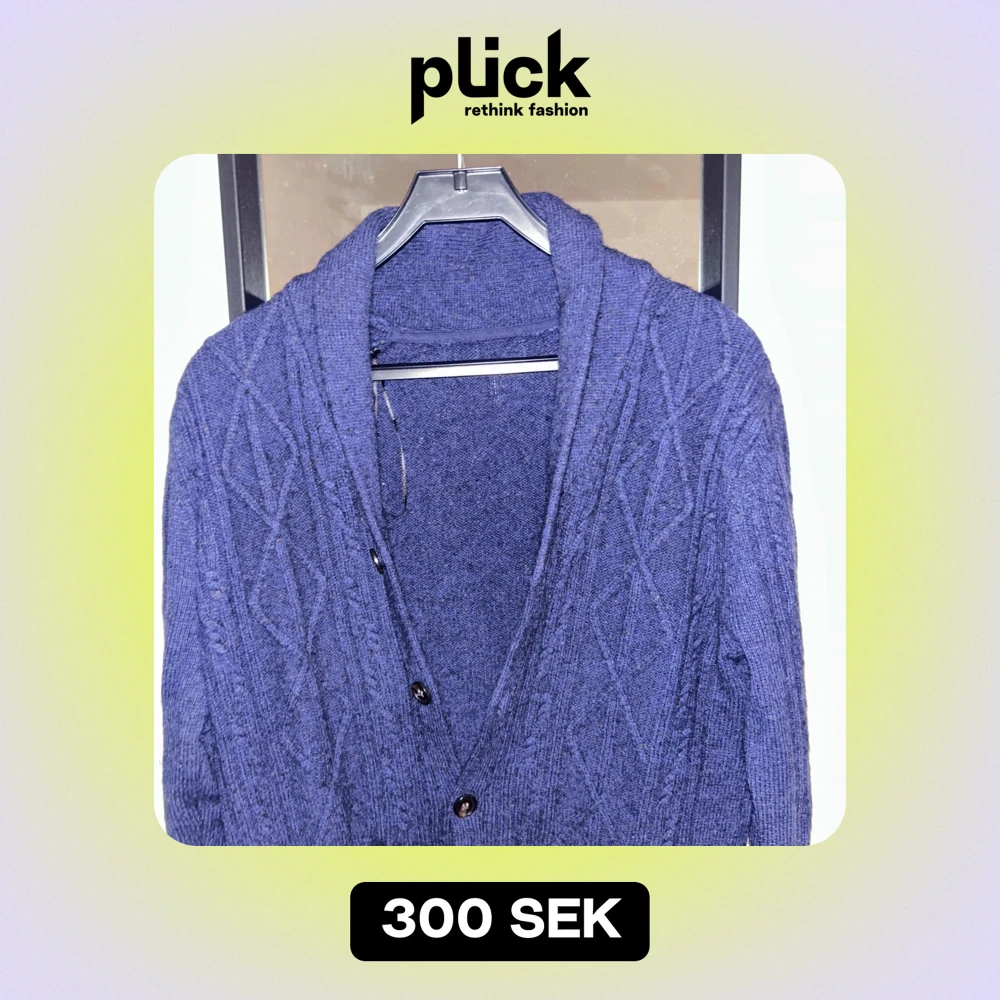Säljer en snygg mörkblå stickad kofta med inga defekter och det är bara att skriva för mer information.