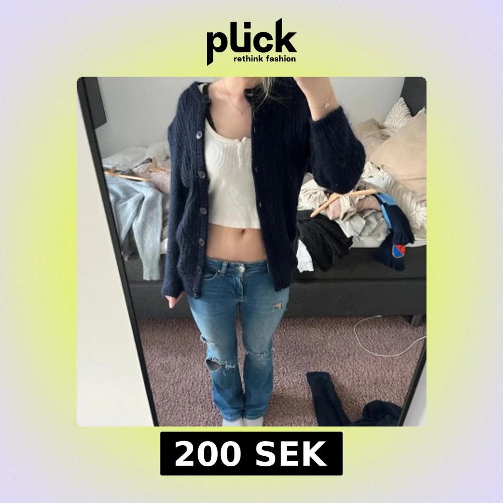 Säljer en snygg mörkblå stickad kofta från Filippa K. Väldigt varm och mysig och kan användas över någon annan tröja. Denna är lite oversized vilket jag tycker är snyggt. Passar mig som är S