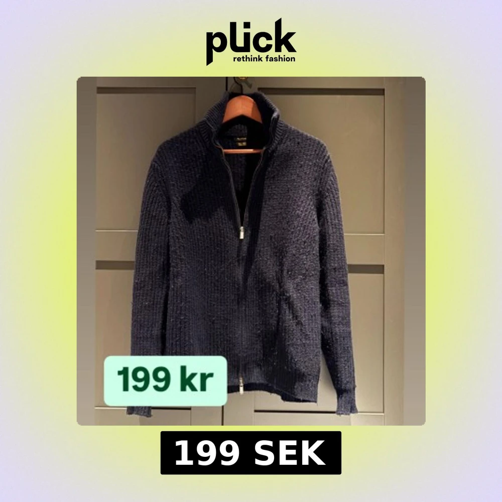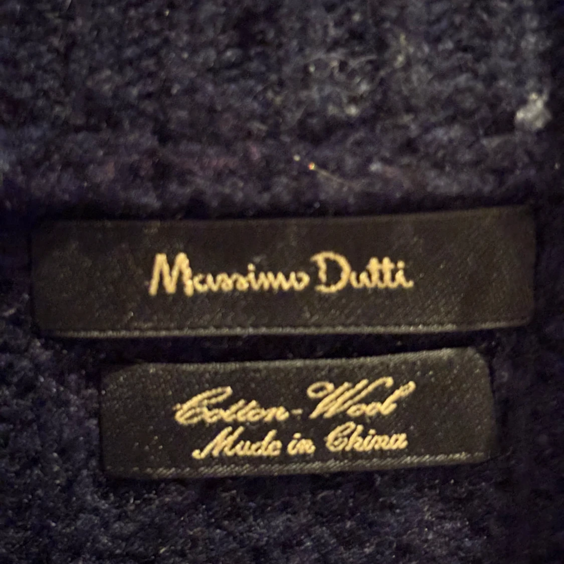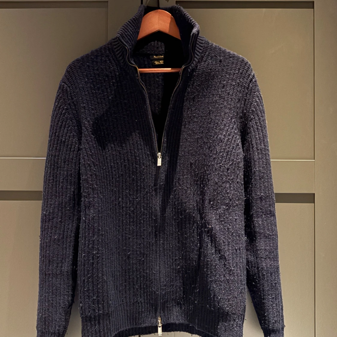 Säljer en mörkblå stickad kofta från Massimo Dutti med dragkedja framtill och hög krage. Koftan är tillverkad i en blandning av bomull och ull, perfekt för kyligare dagar. Enkel och stilren design som passar till mycket.