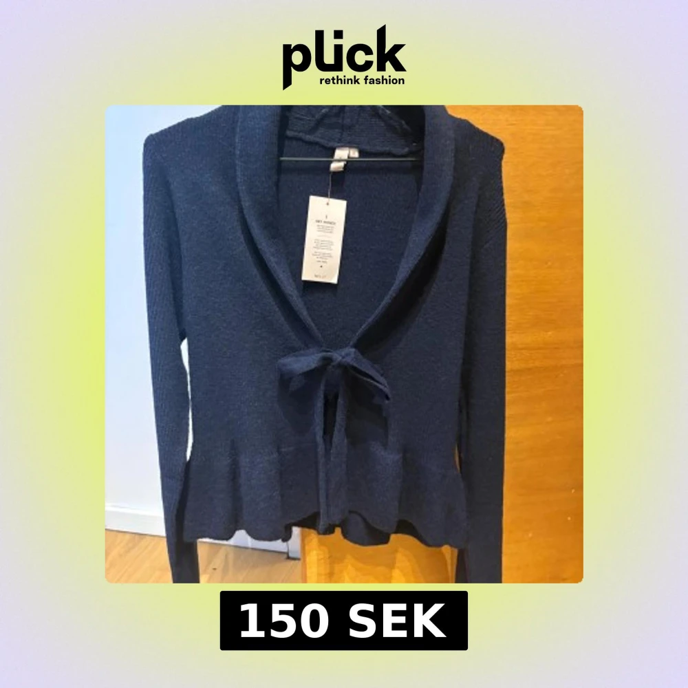 Supersnygg mörkblå stickad kofta från Nelly i storlek S. Koftan har långa ärmar, en bred krage och knytband framtill. Den har en lätt volangkant nedtill som ger en extra touch. Perfekt att slänga över en topp för en chill look.