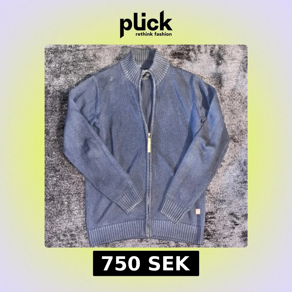 Mörkblå stickad kofta med dragkedja Från Indicode