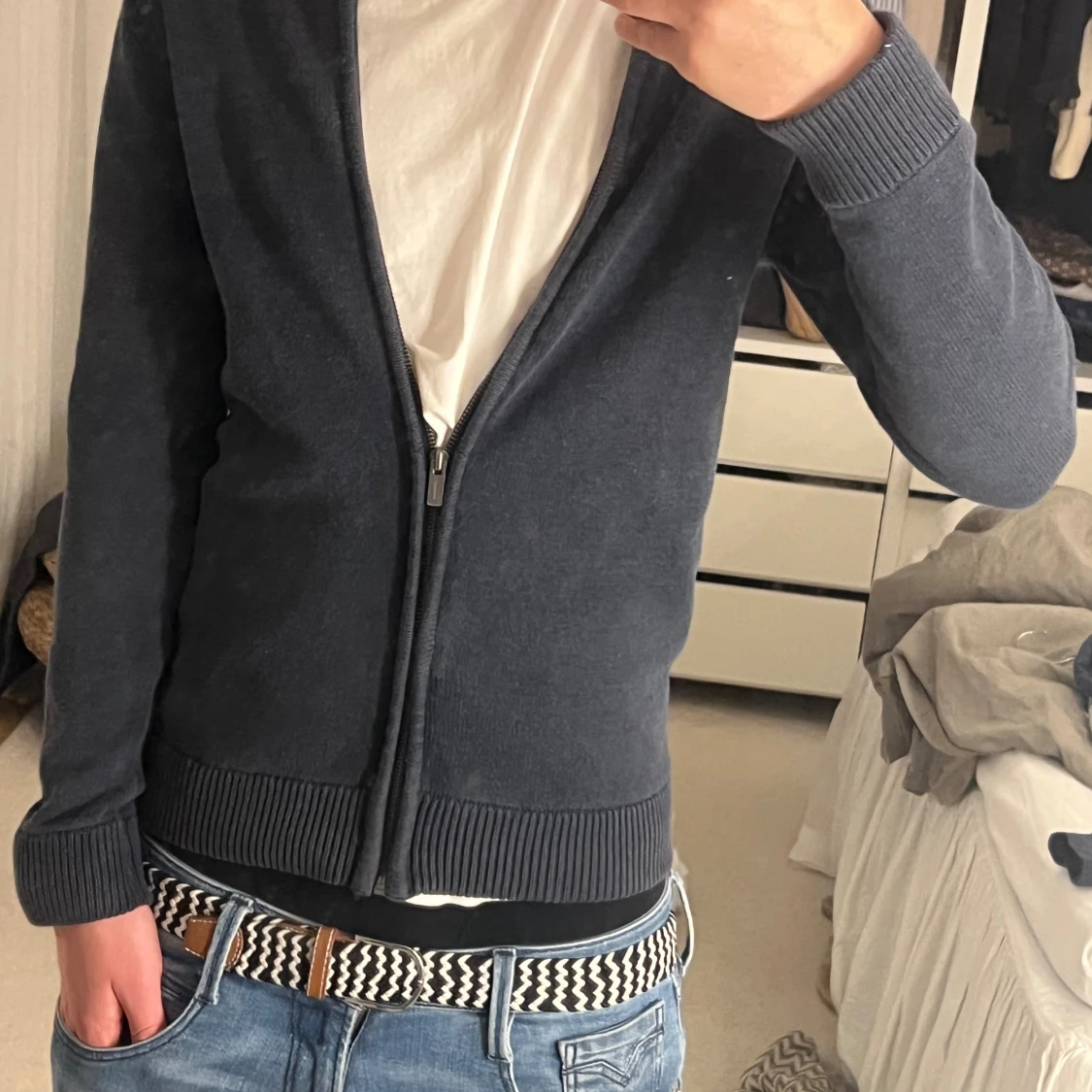 Mörkblå stickad kofta med dragkedja