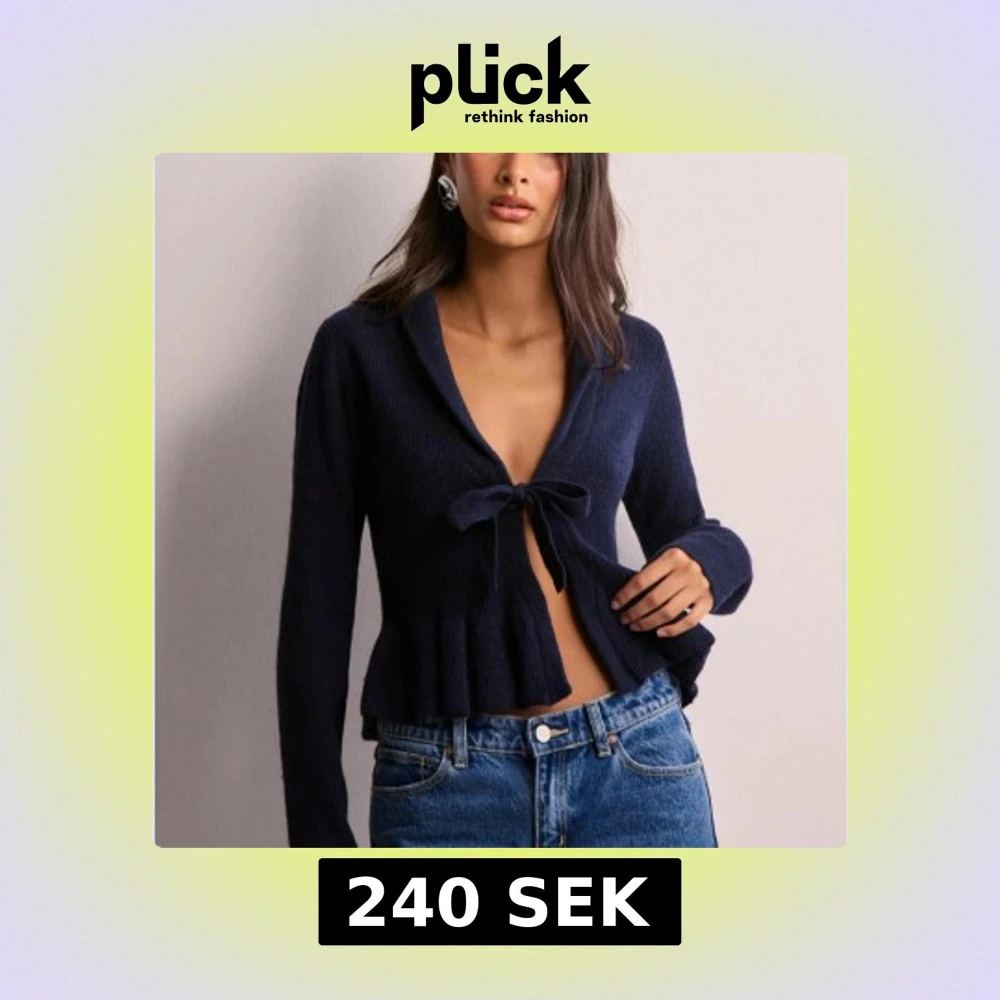 Supersöt mörkblå stickad kofta med volangkant och knyt framtill. Slutsåld på hemsidan 🫶🏼