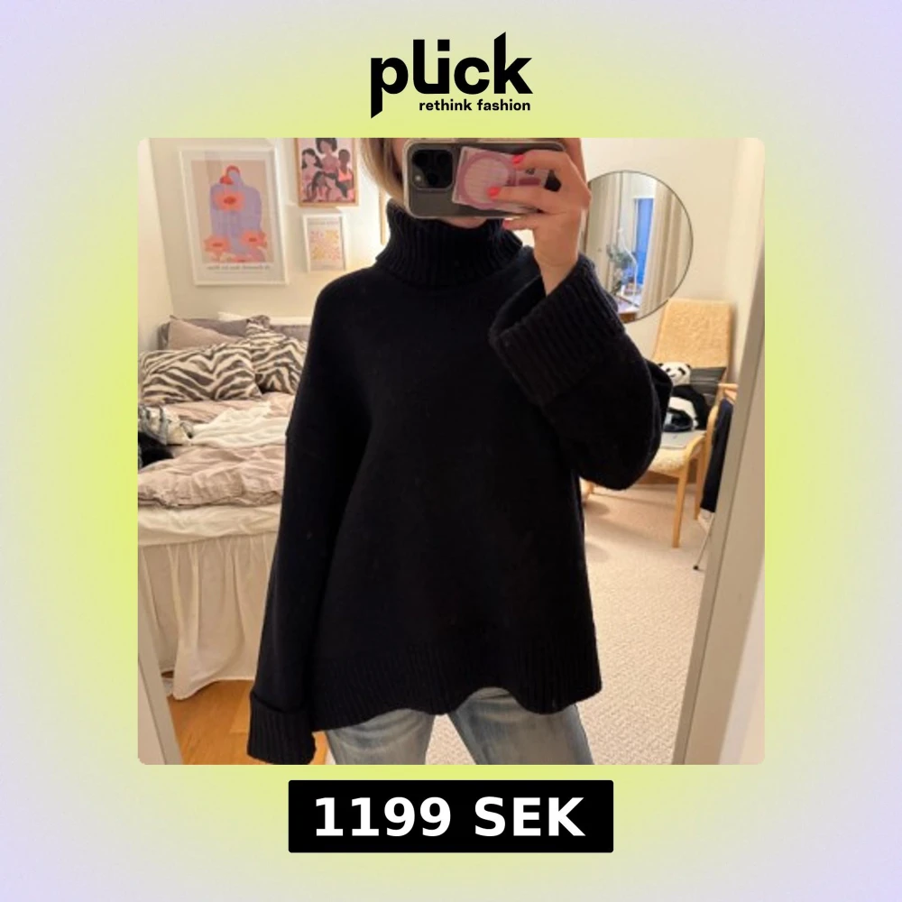 Mysig mörkblå stickad polotröja med hög krage från Samsøe Samsøe breda. Lite overzise passform som gör den extra mysig och skön! Perfekt för kyliga sommar kvällar😫🥰