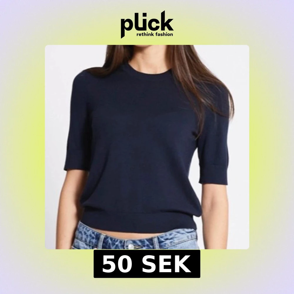 En stilren mörkblå stickad topp med rund halsringning och korta ärmar. Perfekt till jeans eller kjol för en clean look. Mjuk och skön känsla tack vare det stickade materialet. Enkel att matcha och passar till många olika stilar.