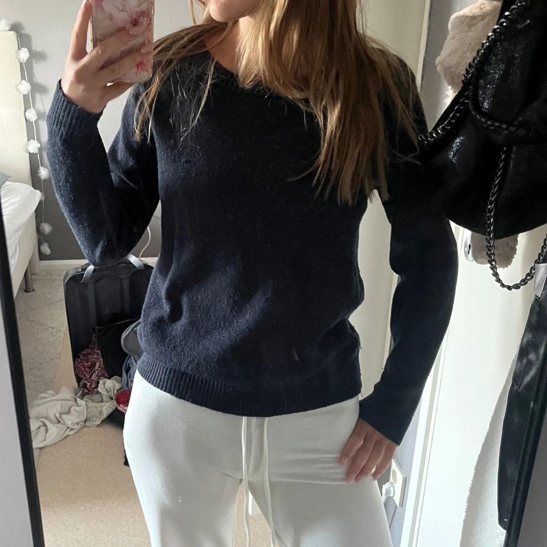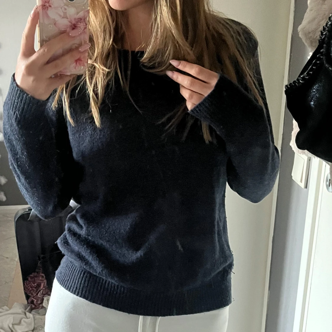Mörkblå stickad tröja från vila i storlek L men passar nog alla storlekar. Den är lite knopprig men inget som syns mycket.💘