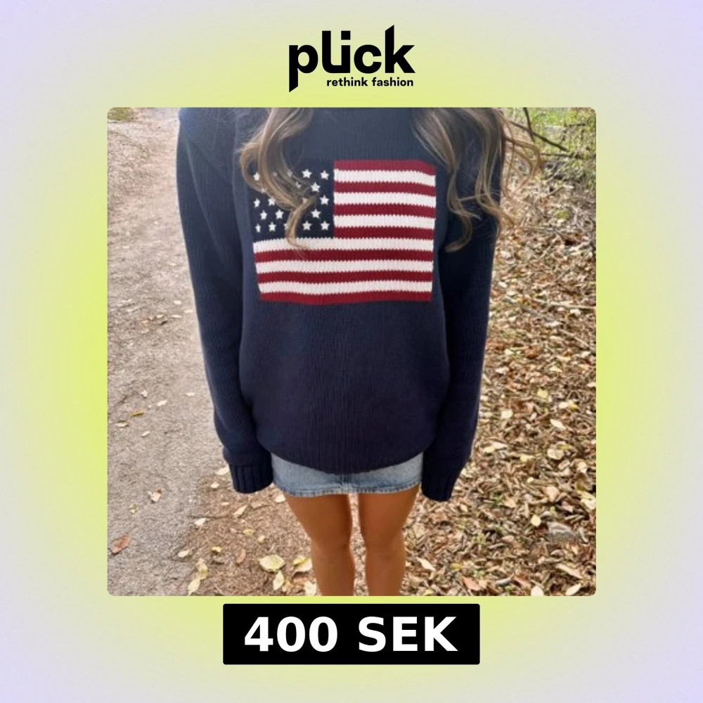 Mörkblå stickad tröja med en stor amerikansk flagga framtill. Tröjan har långärmad modell och ribbade muddar vid ärmslut och nederkant. Perfekt för dig som vill sticka ut med en cool och klassisk look.