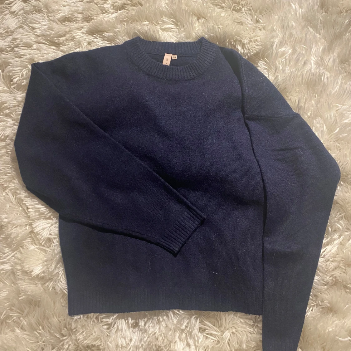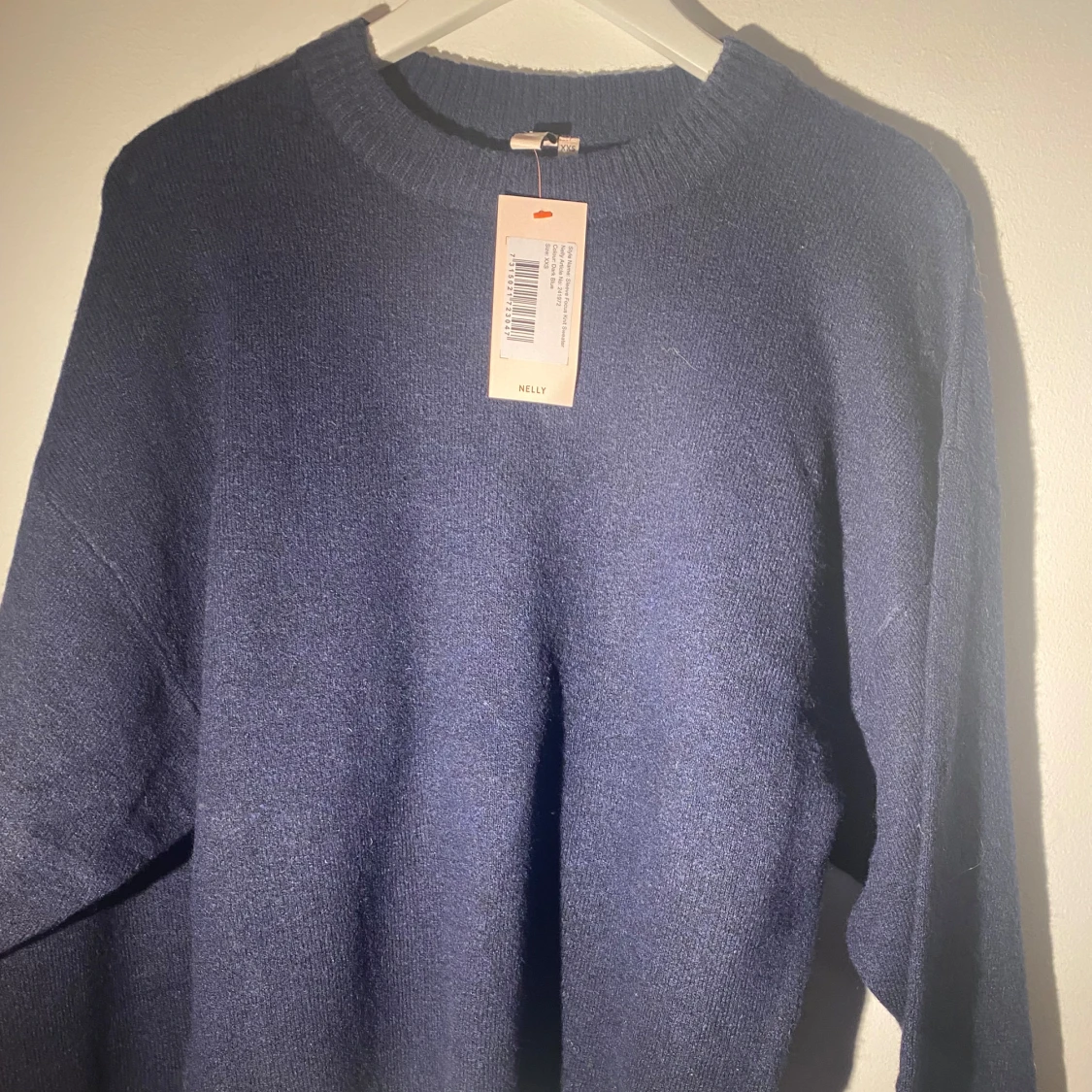säljer denna assnygga & sköna mörkblå stickade tröjan med prislapp kvar som är ifrån Nelly🫶🏻den är i xxs men passar även xs!