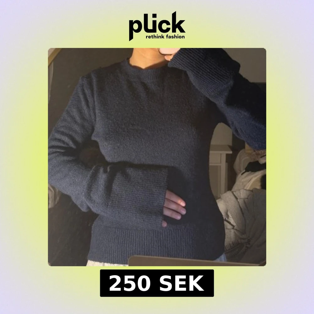 Mysig mörkblå stickad tröja med rund halsringning och långa ärmar. Tröjan har en enkel och stilren design med ribbade muddar vid ärmslut och nederkant. Perfekt för kyligare dagar.