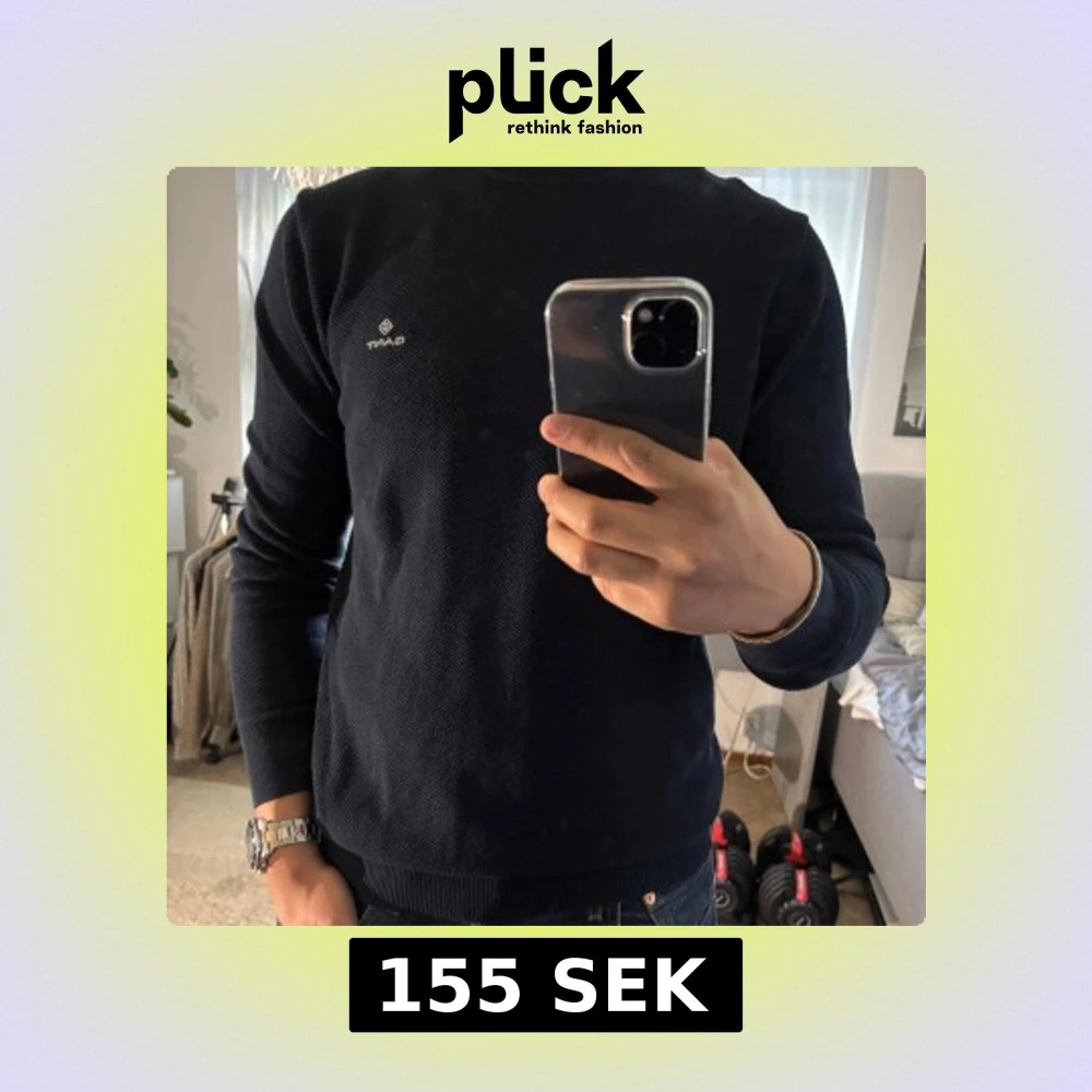 Snygg mörkblå stickad tröja från GANT med diskret logga broderad på bröstet. Tröjan har rund halsringning, ribbade muddar och är långärmad. Perfekt för dig som gillar klassisk och stilren look med en modern touch.
