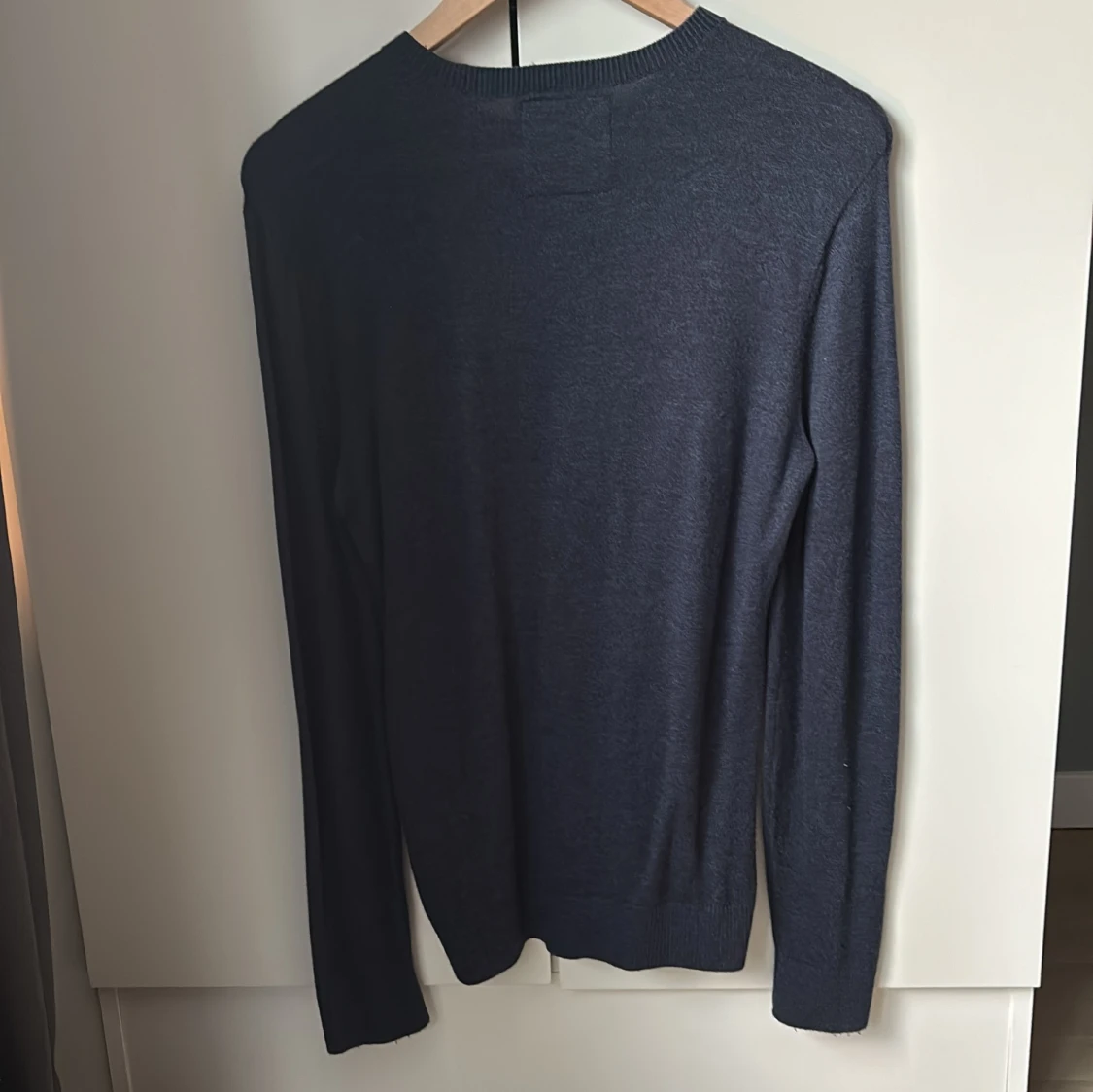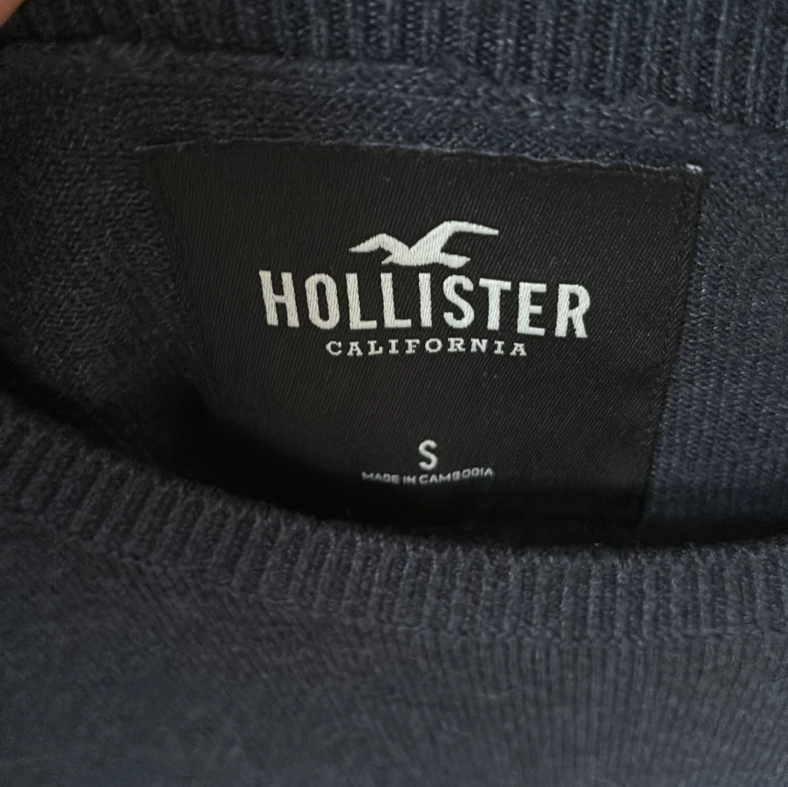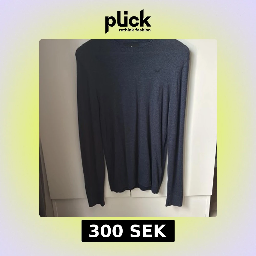 Säljer en stilren mörkblå stickad tröja från Hollister. Tröjan har rund halsringning och långa ärmar, perfekt för vår/sommar. Knappt använd då jag fick den i present av farsan när han var i Kalifornien men var för liten. Storlek: S.