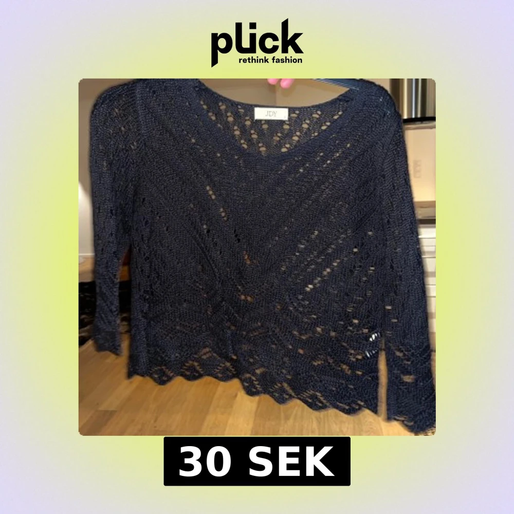 Snygg mörkblå stickad tröja från JDY med v-ringad hals och långärmad design. Tröjan har ett genomgående hålmönster och vågig kant nedtill som ger en chill och trendig vibe. Perfekt att styla med jeans eller kjol för en cool look.