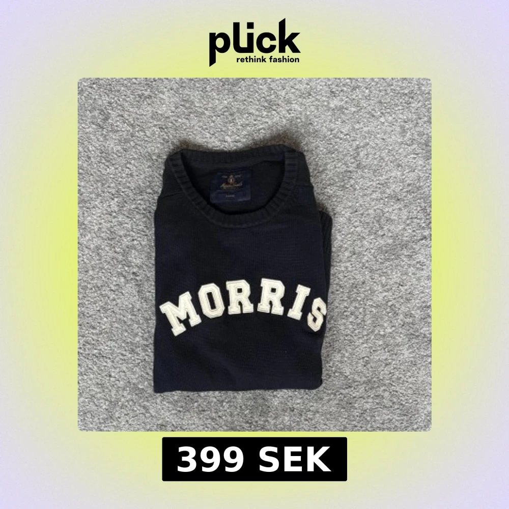 Snygg mörkblå stickad tröja från Morris med stora vita bokstäver över bröstet. Klassisk rund halsringning och ribbade muddar vid ärmslut och nederkant. Perfekt för dig som gillar preppy stil och vill ha något bekvämt men ändå stilrent.
