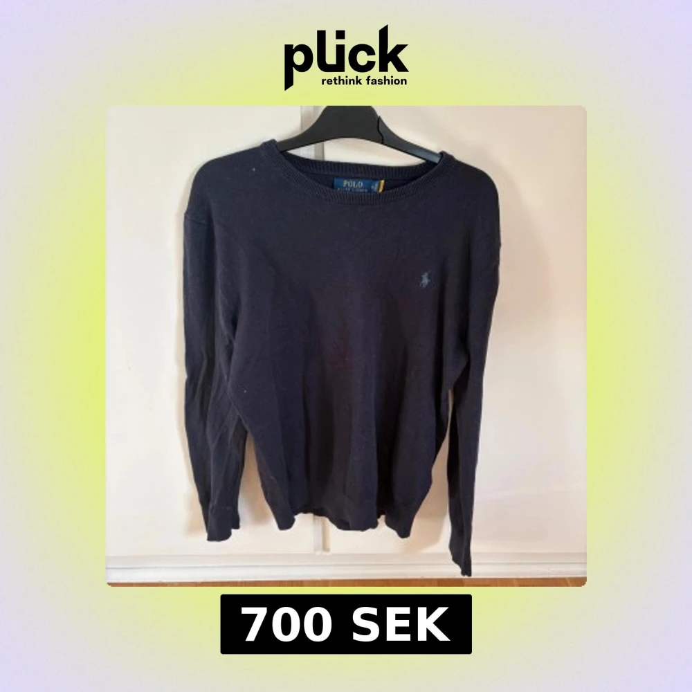 Mörkblå stickad tröja från Polo Ralph Lauren med rund halsringning och diskret broderad logga på bröstet. Klassisk och enkel design som passar till mycket. Långa ärmar och ribbade muddar vid ärmslut och nederkant.