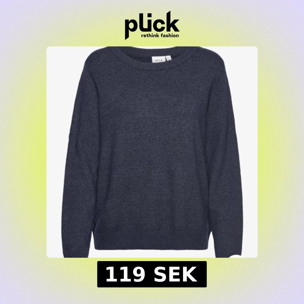 mörkblå stickad tröja från Vila. Tröjan har rund halsringning, ribbade muddar och lång ärm. Storlek XS men skulle säga att den sitter som S. Nypris 329kr, mitt pris 119kr. Skriv för fler bilder eller funderingar 💞