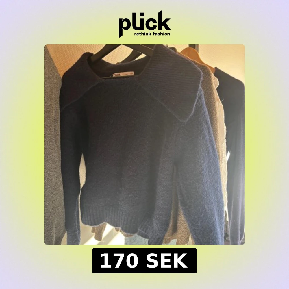 Säljer en mysig mörkblå stickad tröja från Zara. Tröjan har en unik krage och långa ärmar, I nysskick/ inga defekter 💖💖💖💖 passar S-M