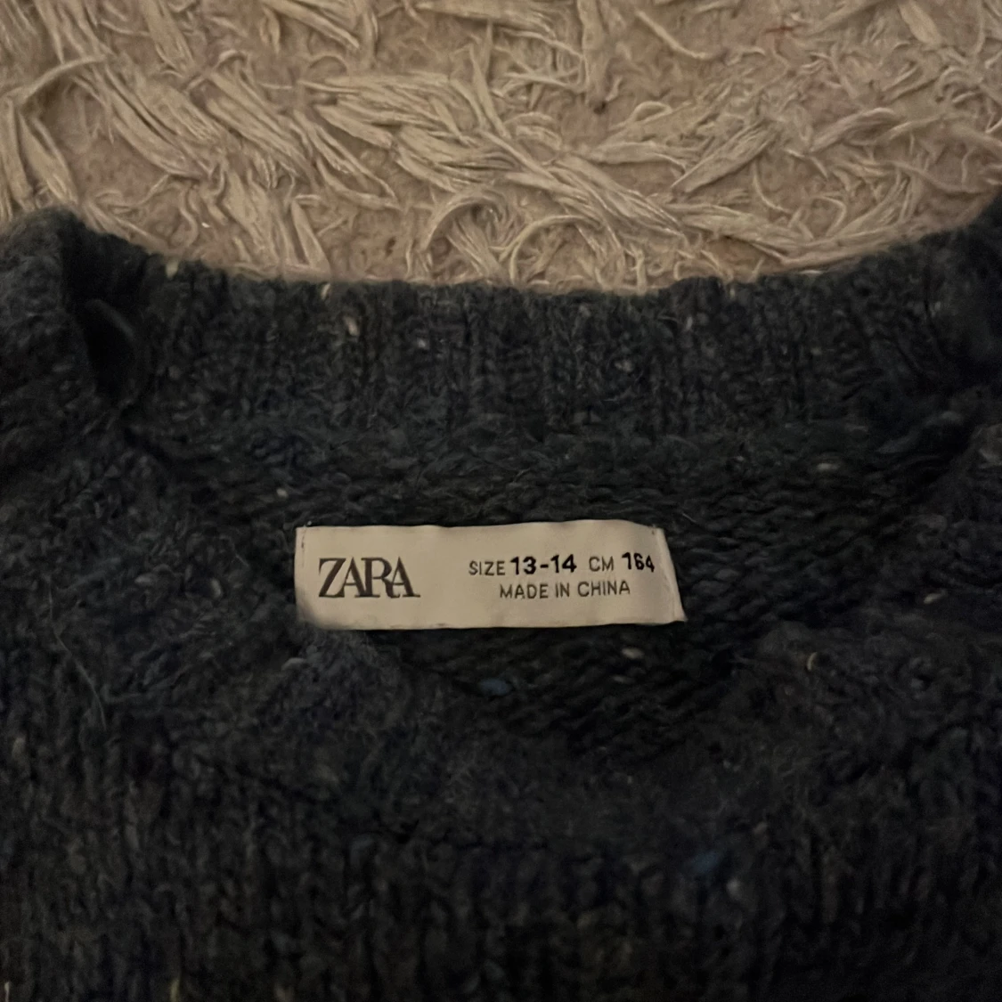 Säljer en mysig mörkgrå stickad tröja från Zara. Perfekt för kyliga dagar med sin varma och bekväma passform. Tröjan har långa ärmar och en klassisk rund halsringning. Passar både till vardags och lite finare tillfällen.💙