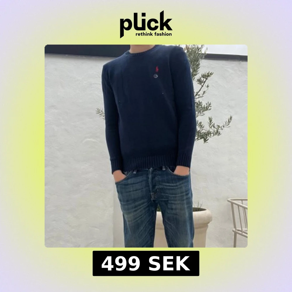 (Modellen är 183)Snygg mörkblå stickad tröja från Polo Ralph Lauren med klassisk rund hals och röd broderad logga på bröstet. Tröjan har ribbade muddar vid ärmslut och nederkant, och är långärmad. Perfekt för dig som gillar stilrena och tidlösa plagg.