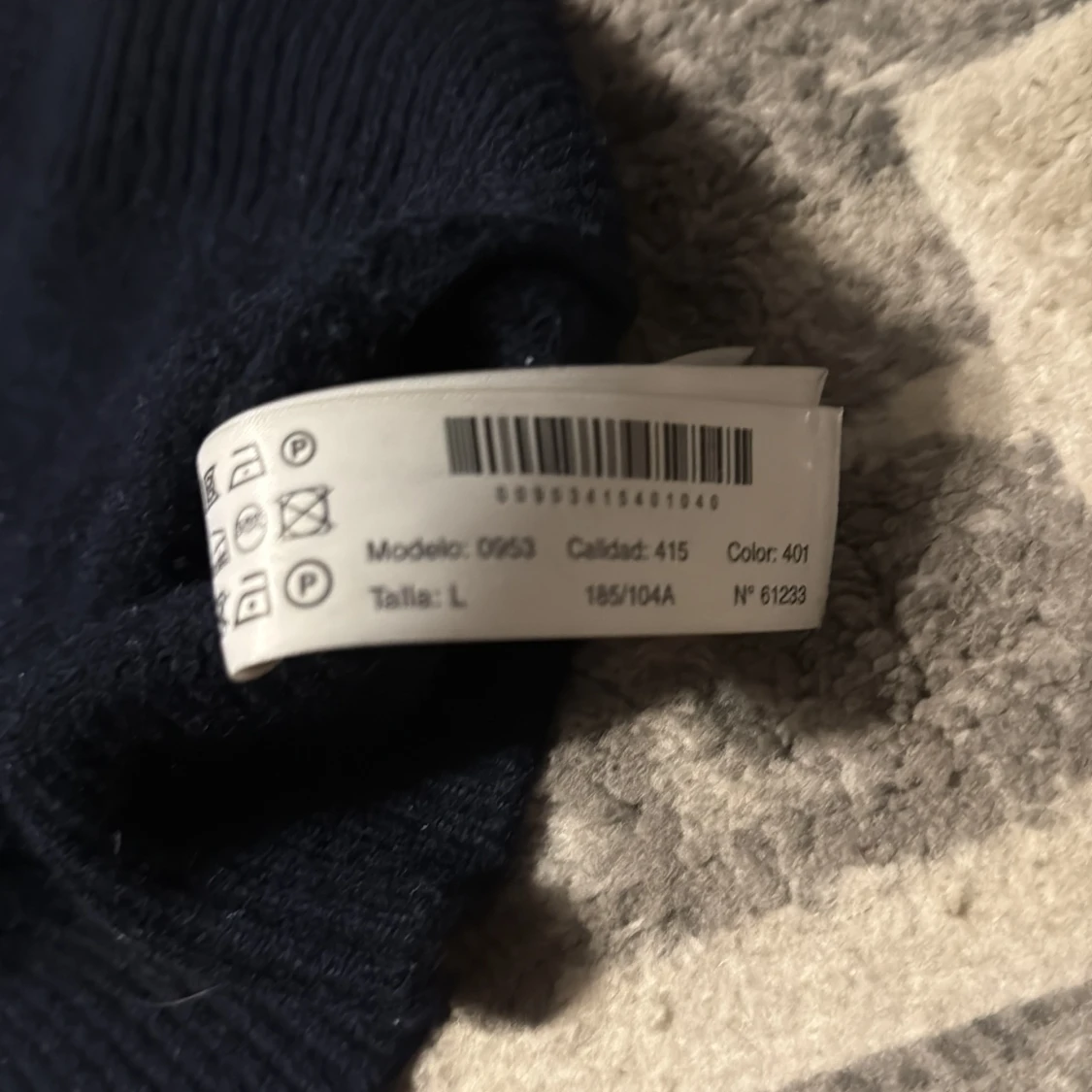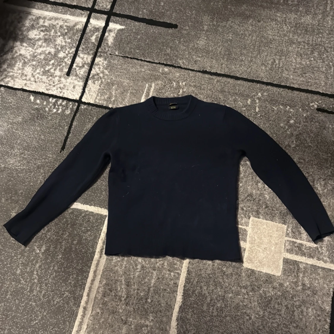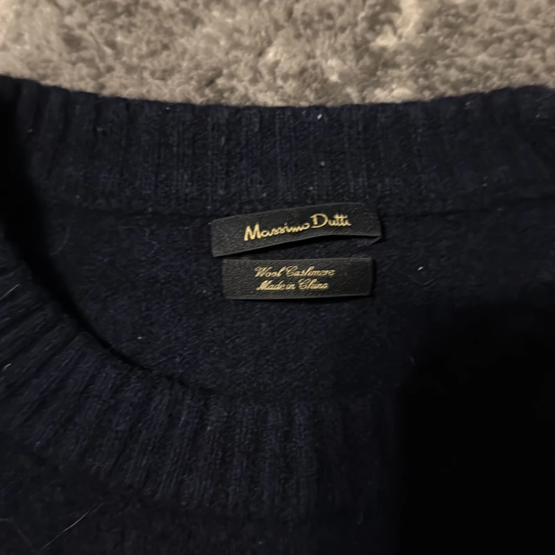 Mörkblå stickad tröja från Massimo Dutti i en lyxig mix av ull och kashmir. Tröjan har rund halsringning, ribbade muddar och lång ärm. Enkel och stilren modell som är perfekt för kyligare dagar.