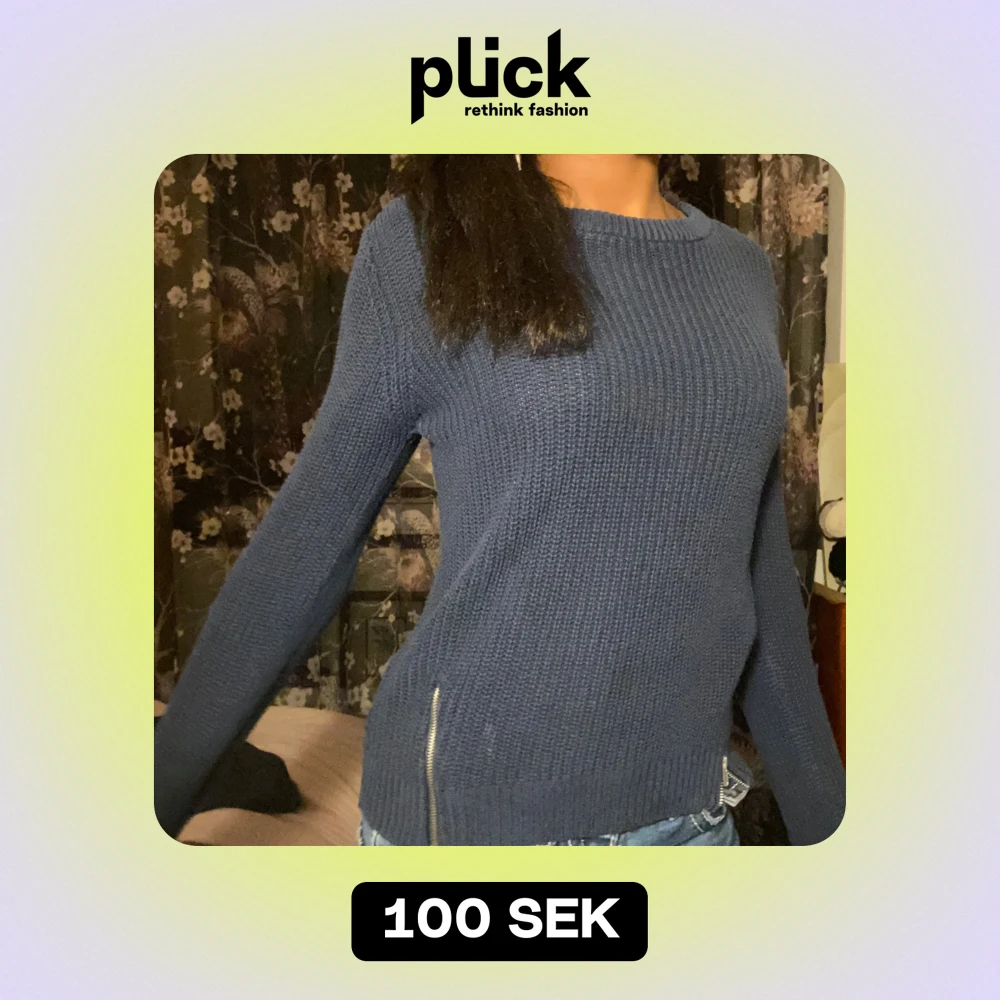 Säljer en snygg mörkblå stickad tröja med coola dragkedjor på sidorna. Perfekt för höst och vinter, den är både varm och stilren. Tröjan har långa ärmar och en bekväm passform. Perfekt för att hålla sig varm! 💙 I tröjan står det storlek 130 men passar även för mig som är runt 150cm💗
