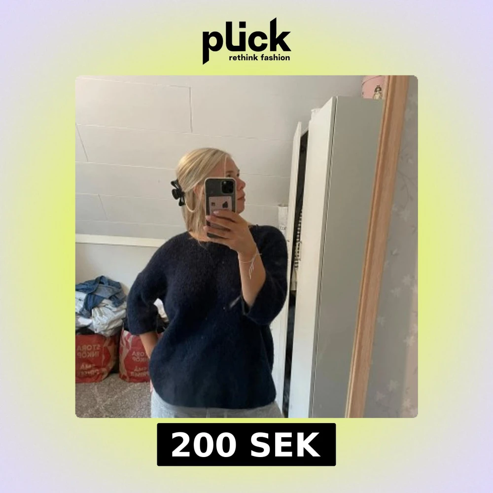 Mysig mörkblå stickad tröja med trekvartsärmar och rund hals. Tröjan har en loose passform och är perfekt för kyligare dagar. Enkel och stilren design som är lätt att matcha med olika outfits.