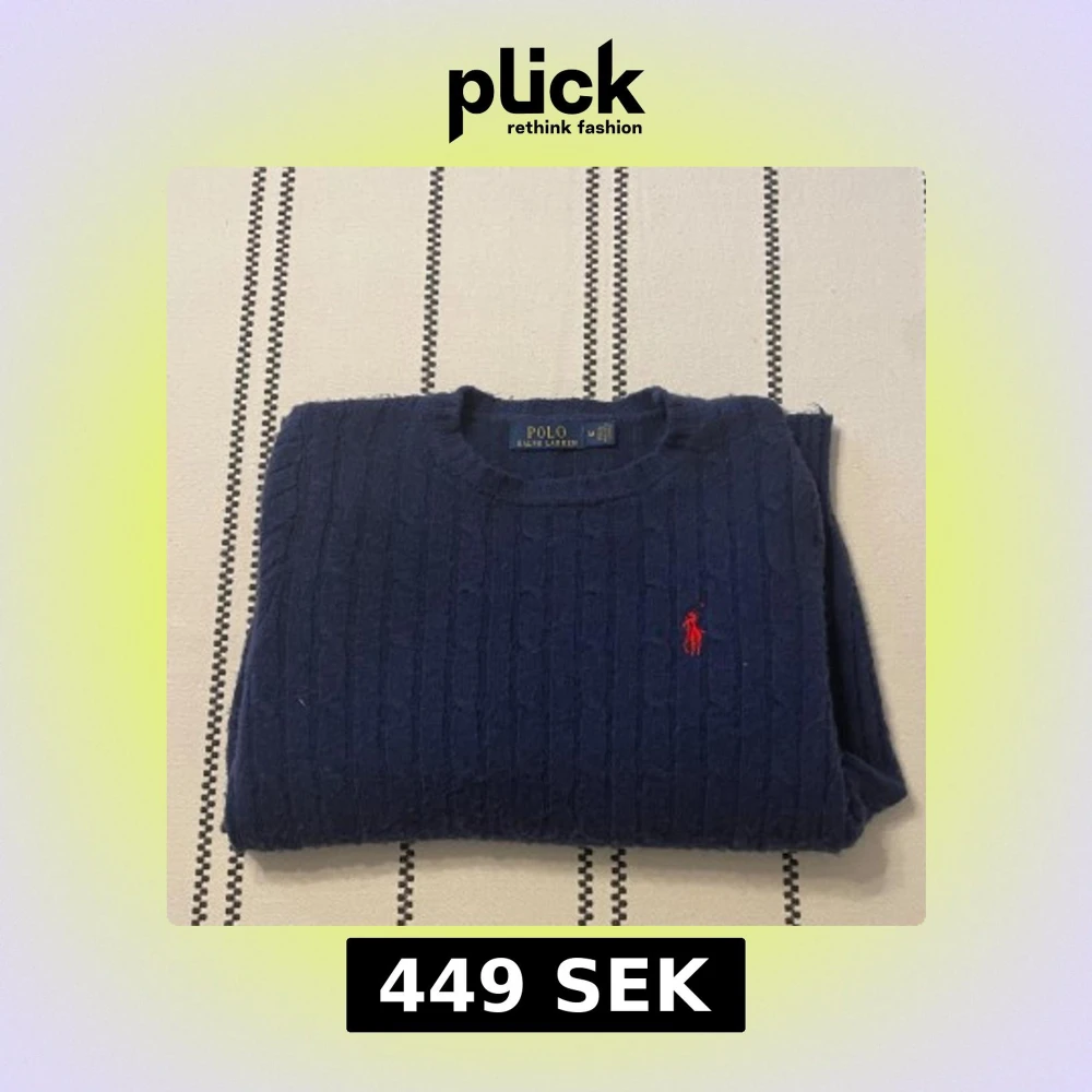 Mörkblå stickad tröja från Polo Ralph Lauren med klassiskt kabelstickat mönster och röd broderad logga på bröstet. Rund halsringning och långa ärmar. Perfekt för lager-på-lager under höst och vinter. Den är lite nopprig, det är pga av det fluffiga, luddiga och stickade materialet, går att åtgärda på cirka 5-10 min! Axelbredd 37 och 58 längd