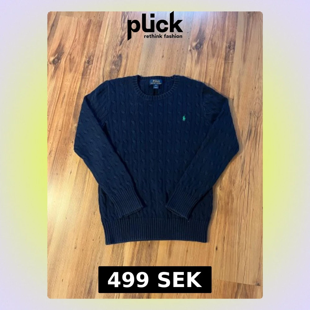 Mörkblå stickad tröja från ralph lauren 🐎 Tröjan är size S/170 - måtten: längd (62cm), bredd (41cm), ärmlängd (58cm) 8/10 skick, mycket fräsch, finns nån smutsfläck vid ärmen