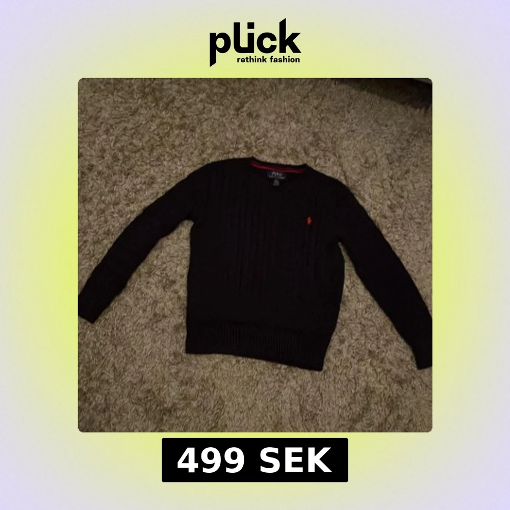 Mörkblå stickad tröja från Polo Ralph Lauren med klassisk kabelstickning och röd broderad logga på bröstet. Tröjan har rund halsringning, ribbade muddar och lång ärm. Perfekt för dig som gillar stilren och tidlös design.