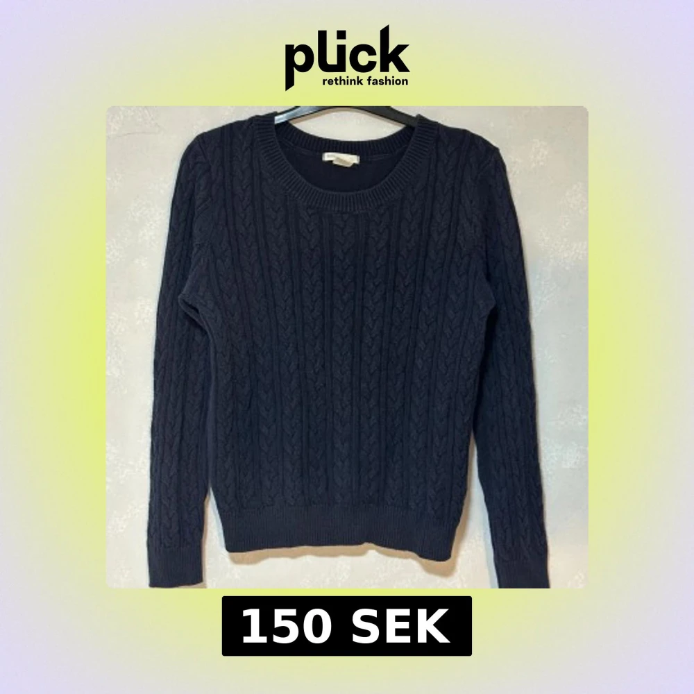 Mörkblå stickad tröja från H&M med klassiskt flätmönster. Tröjan har rund halsringning och långa ärmar, perfekt för kyligare dagar. Enkel och stilren design som passar till det mesta.