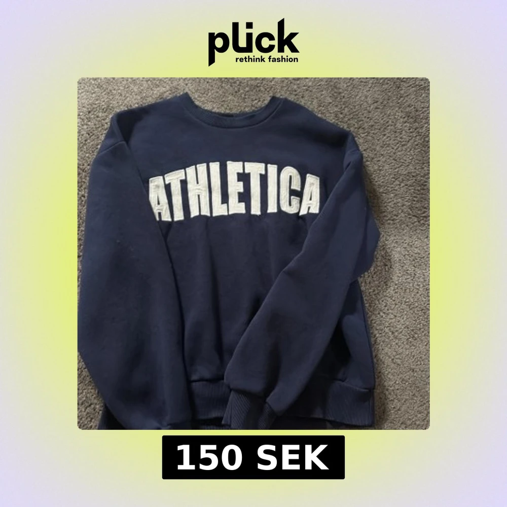 Mörkblå sweatshirt från Gina Tricot med stor vit ATHLETICA-text framtill. Klassisk rund halsringning, ribbade muddar vid ärmslut och nederkant. Perfekt för en sportig och chill look. Mjuk insida och relaxed passform.