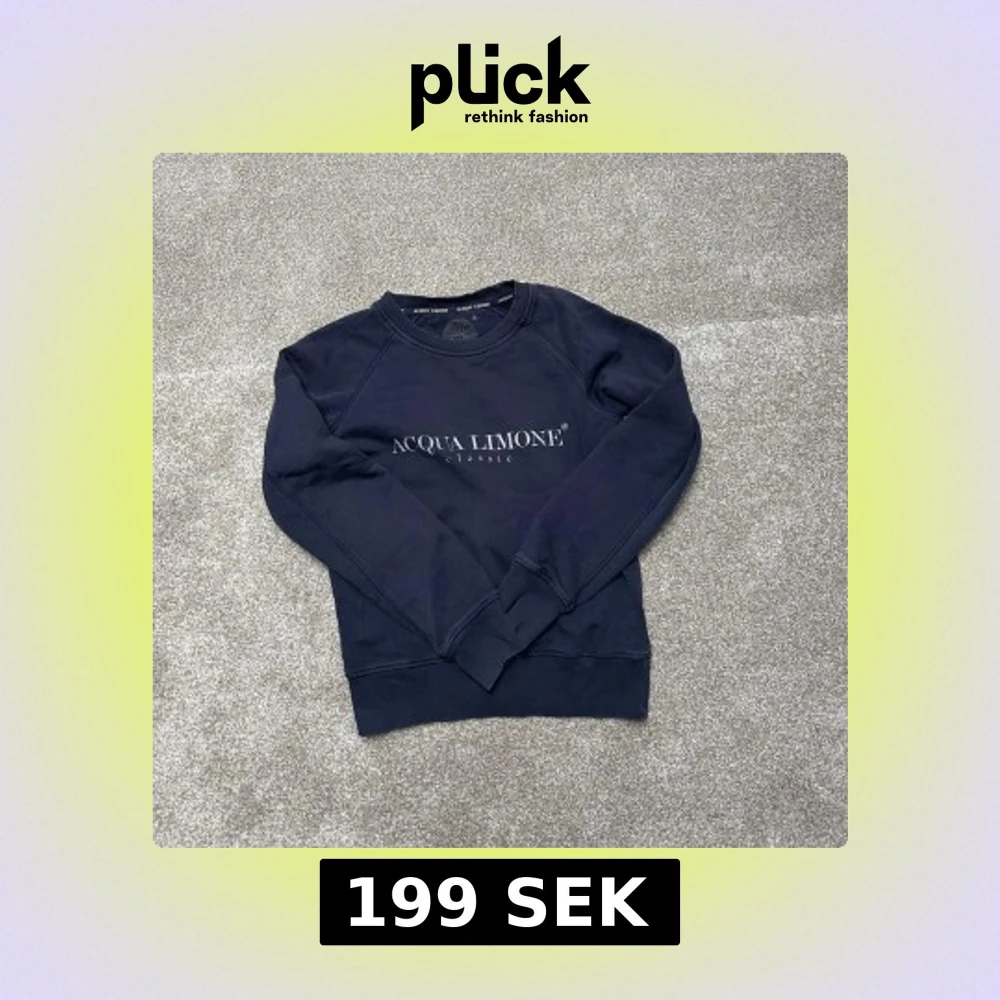 Säljer en snygg mörkblå sweatshirt från Acqua Limone med tryck både fram och bak. Tröjan har långa ärmar och ribbade muddar vid ärmslut och nederkant. Perfekt för en avslappnad stil.
