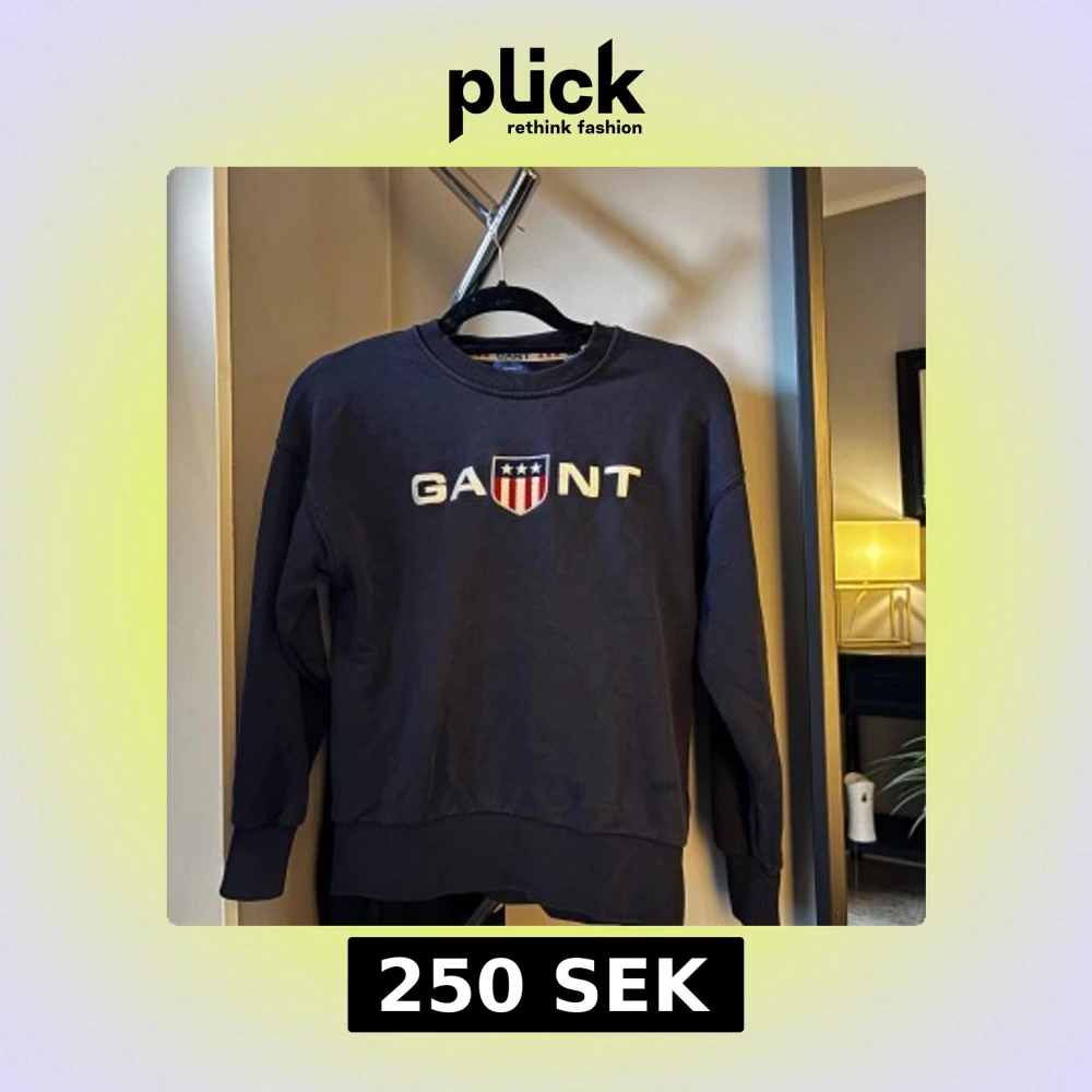 Säljer en mörkblå sweatshirt från Gant med broderad logga och sköld på bröstet. Tröjan har rund halsringning, långa ärmar och ribbade muddar vid ärmslut och nederkant. Perfekt för en avslappnad och stilren look.