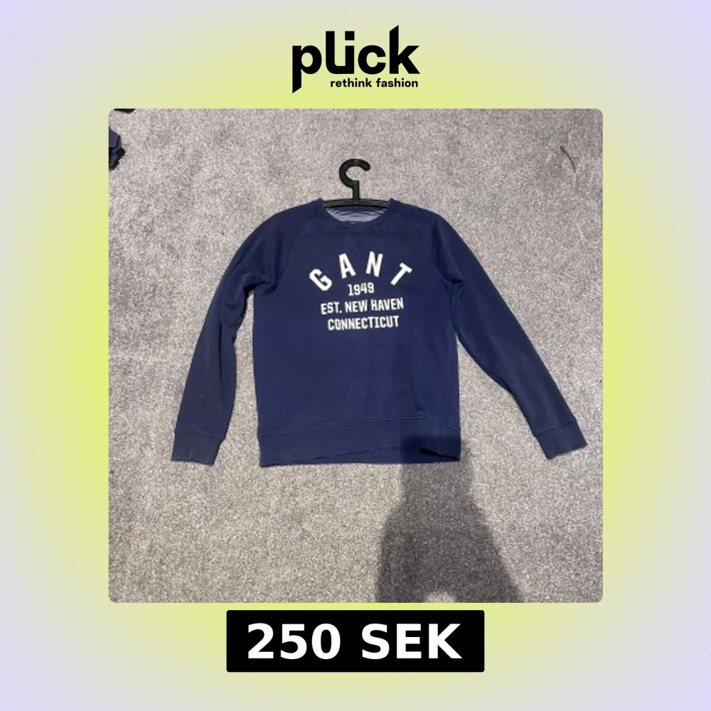 Snygg mörkblå sweatshirt från GANT med vit tryckt text på bröstet. Tröjan har rund hals, långa ärmar och ribbade muddar. Perfekt för en chill och sportig look. Tillverkad i mjuk bomull för extra komfort.
