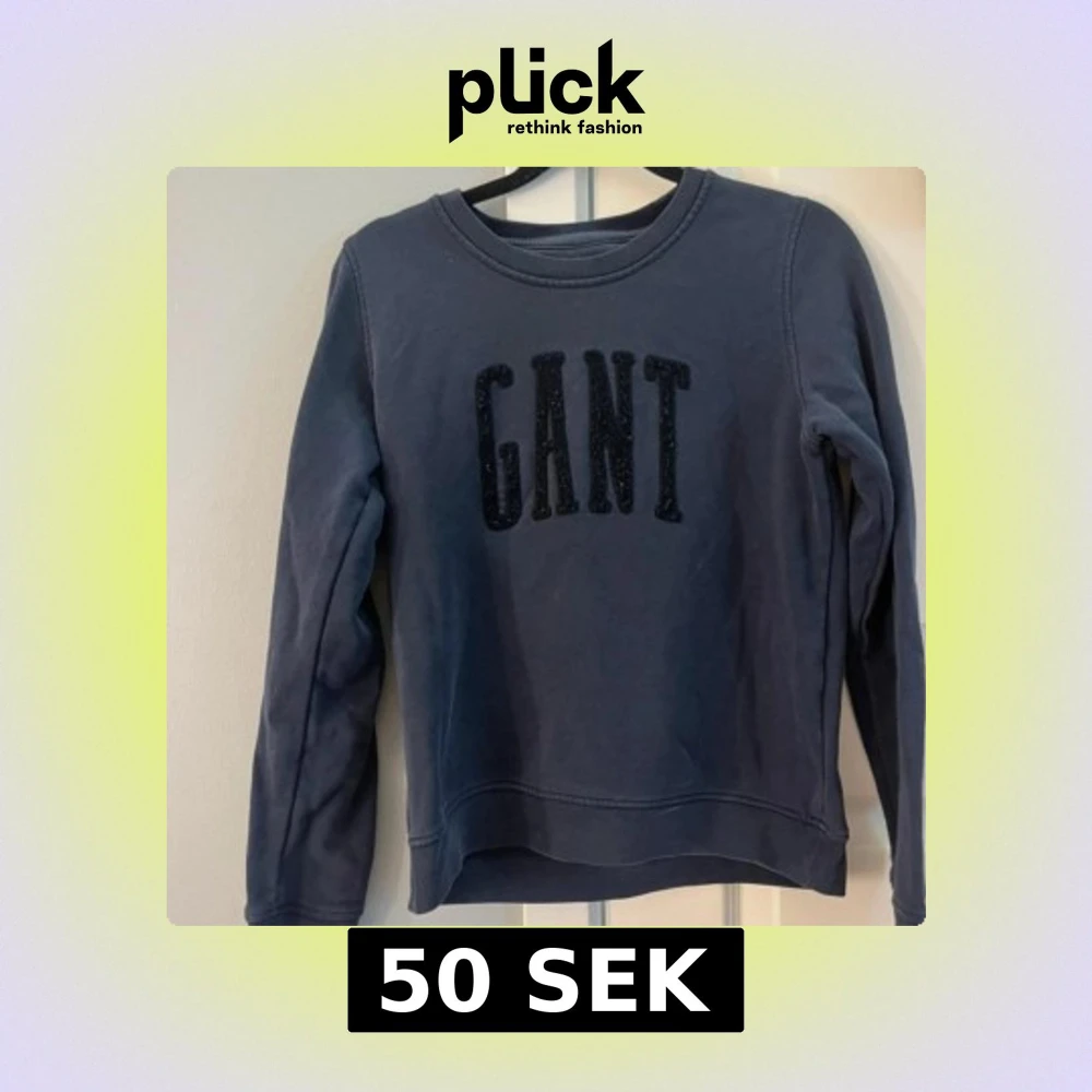 Snygg mörkblå sweatshirt från GANT i storlek XS. Tröjan har ett stort svart GANT-tryck framtill och är tillverkad i mjuk bomull. (Lite knopprig på själva texten)