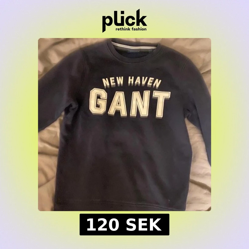 Snygg mörkblå sweatshirt från GANT i storlek XS med trycket 'NEW HAVEN GANT' framtill. Klassisk rund halsringning och ribbade muddar. Perfekt för en chill och sportig look.
