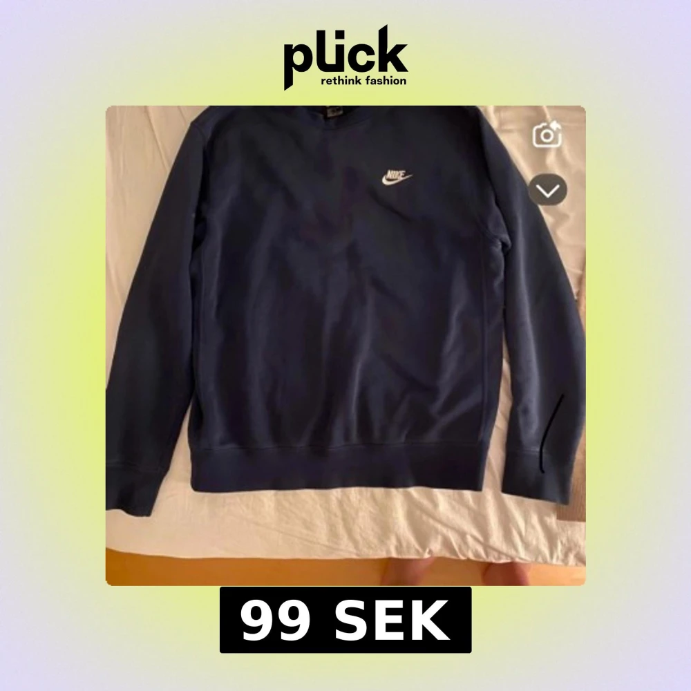 Säljer en stilren mörkblå sweatshirt från Nike med klassisk logga på bröstet. Tröjan har rund halsringning och långa ärmar. Perfekt för en sportig och avslappnad look.