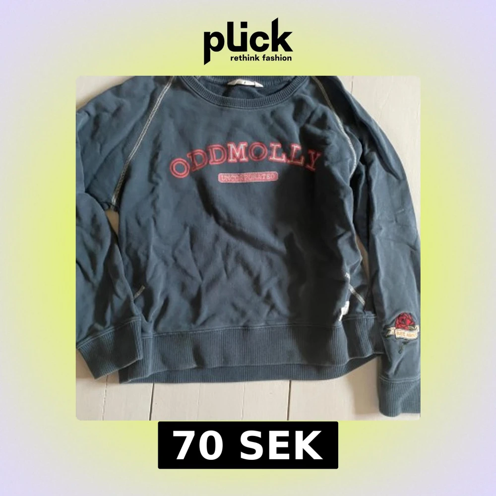 Mörkblå sweatshirt från Odd Molly med röd logotyp framtill och coolt broderat ros-märke på ärmen. Tröjan har ribbade muddar, kontrastsömmar och rund hals. Perfekt för dig som gillar 2014 stil och vill ha något bekvämt och snyggt.