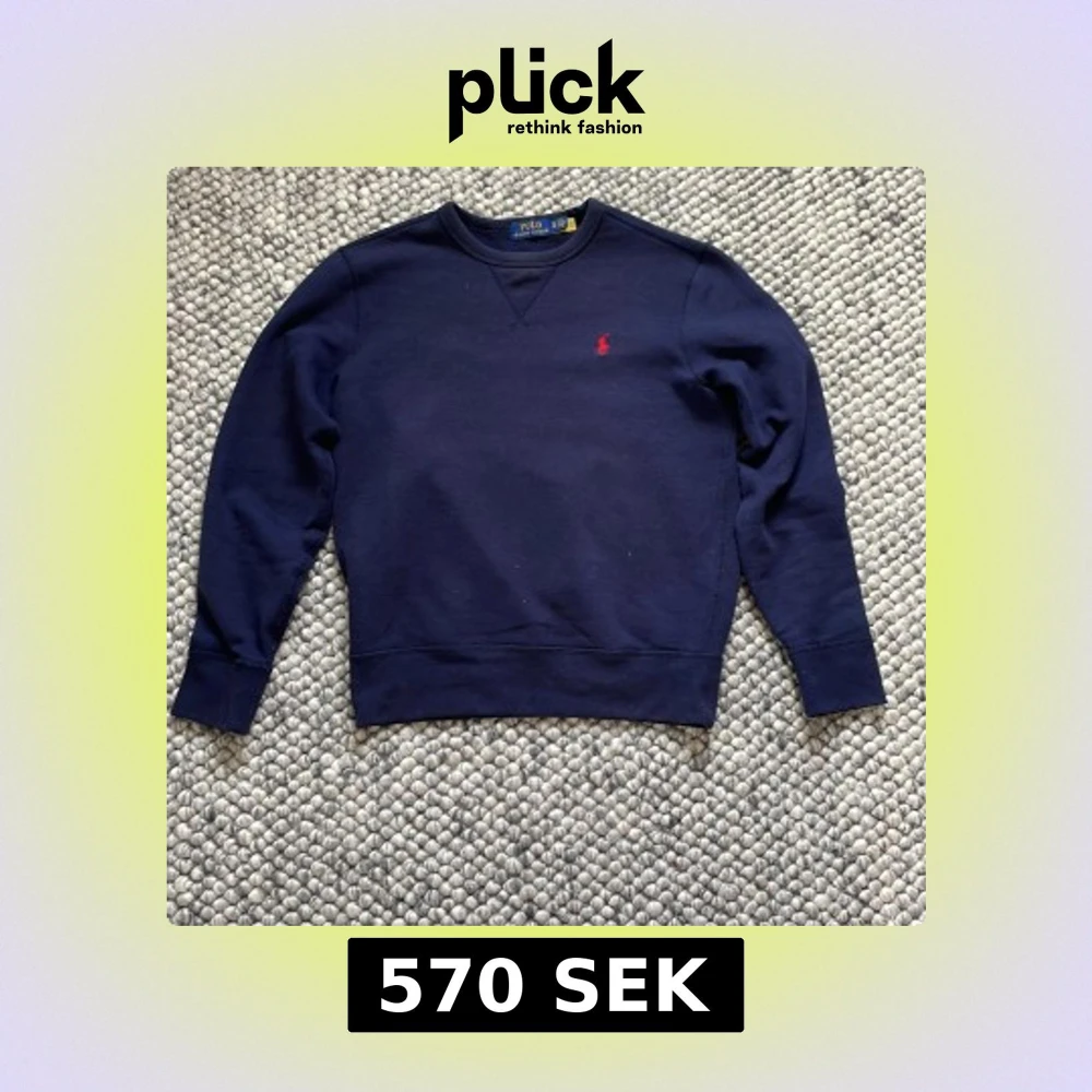 Säljer en klassisk mörkblå sweatshirt från Polo Ralph Lauren med röd broderad logga på bröstet. Tröjan har rund halsringning och långa ärmar. Säljes då den inte passar längre.