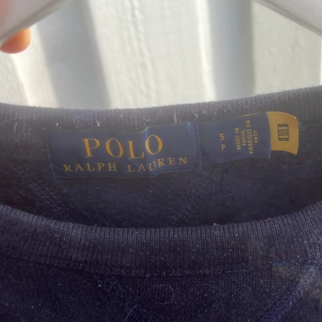 Klassisk mörkblå sweatshirt från Polo Ralph Lauren med röd broderad logga på bröstet. Tröjan har rund hals, långa ärmar och ribbade muddar vid ärmslut och nederkant. Perfekt för en chill och stilren look.