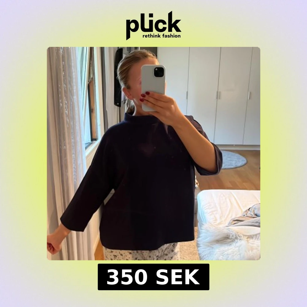 Säljer en stilren mörkblå topp från Carin Wester med hög krage och trekvartsärmar. Modellen är loose fit och har en minimalistisk look som passar perfekt till jeans eller kjol. Materialet känns mjukt och har en lätt struktur.