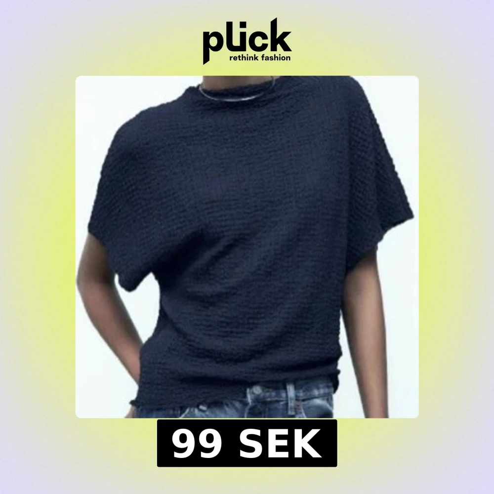 Snygg mörkblå topp med unik textur. Perfekt för en stilren look. Den har korta ärmar och en avslappnad passform. Passar bra till jeans eller kjol för en trendig outfit.